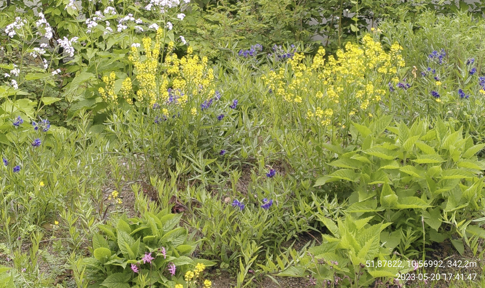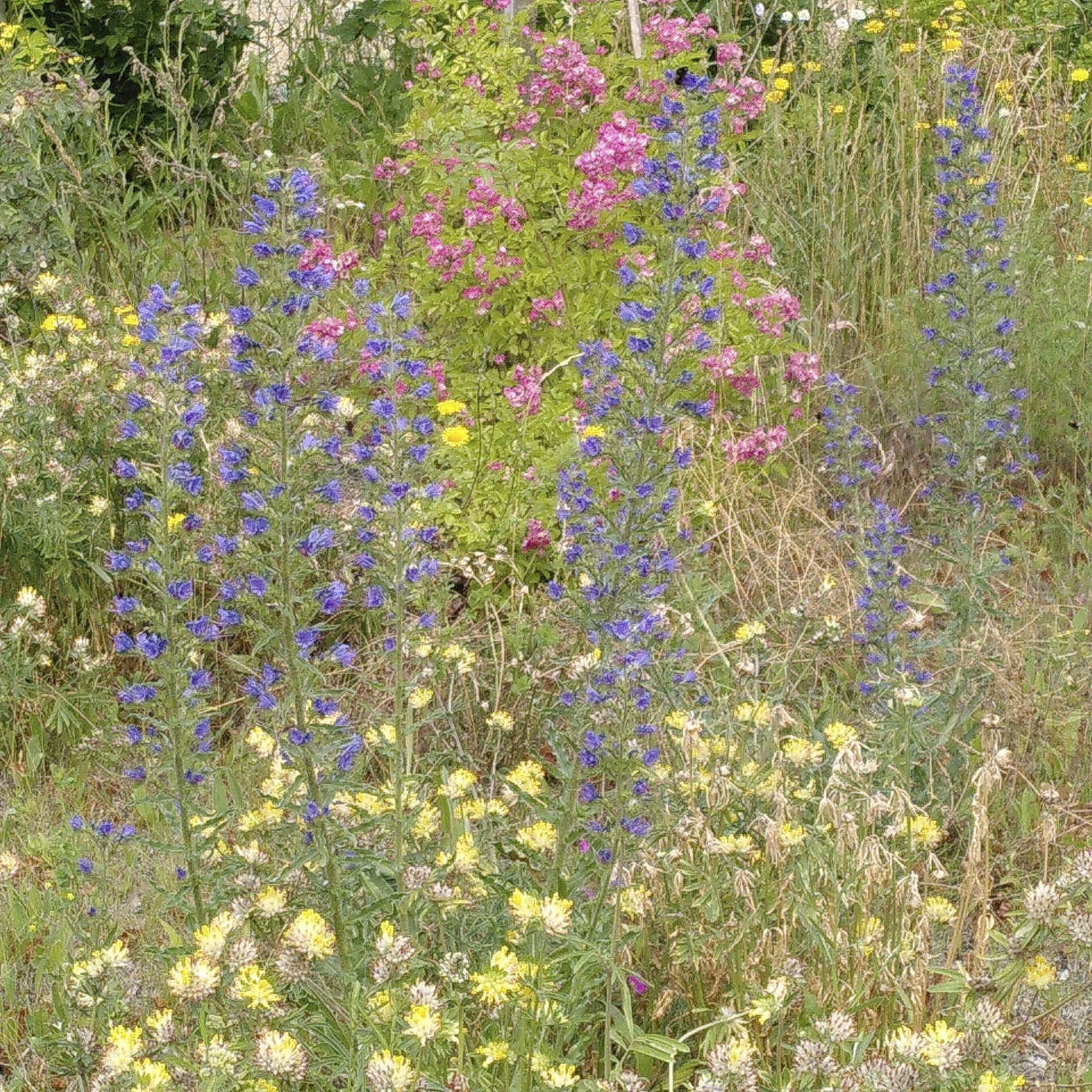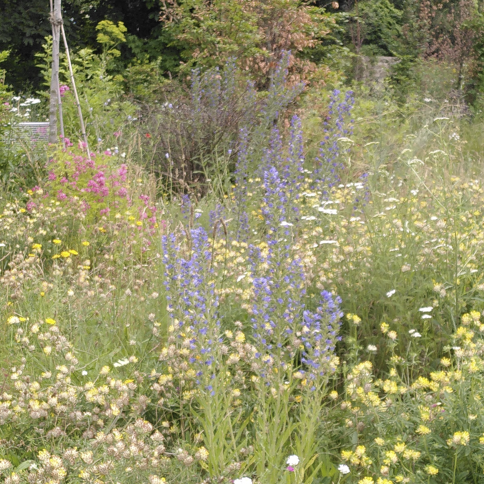 Wildblumenwiese, mit Obstbäumen und Hagebuttenrosen
